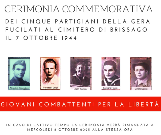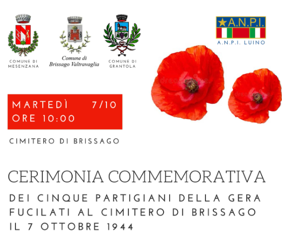 siamo qui oggi per ricordare quei cinque partigiani che il 7 ottobre del 1944 furono fucilati al cimitero di Brissago Valtravaglia, dove oggi ci troviamo.